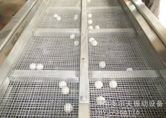 直線篩長與寬的比例大約是1:2-3,常用的寬度為0.5米、0.8米、1米、1.2米、1.5米、1.8米、2米等,長度可以根據(jù)精度的需求定制。篩面越寬,處理量越大,篩面越長,精度越高。直線篩也可以同時安裝1-6層篩框。同時將物料篩分成2-7個等級,篩網(wǎng)孔徑大小可按需安裝。直線振動篩網(wǎng)架可配置清網(wǎng)裝置-彈跳球,在開啟振動篩篩分時不斷的擊打篩網(wǎng),防止物料顆粒堵網(wǎng)。