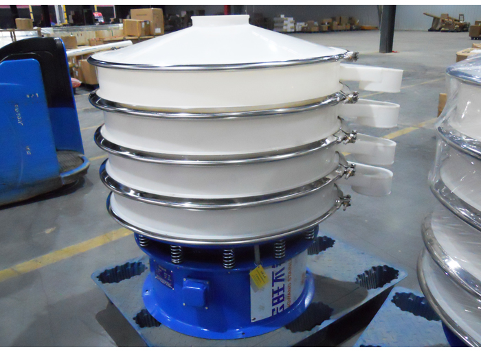 ? ? ? ?塑料旋振篩又叫做塑料振動篩、防腐蝕振動篩、PP塑料振動篩等。是一款專門針對一些特殊物料篩選的設(shè)備。如與碳鋼或不銹鋼材質(zhì)接觸后容易產(chǎn)生氧化、腐蝕等問題的物料。塑料旋振篩與物料接觸部分采用的是塑料材質(zhì),是含有氧化、腐蝕鋼鐵材質(zhì)的物料篩分、除雜、過濾常用的設(shè)備。塑料振動篩避免了物料在篩分的過程中發(fā)生變質(zhì)、變性的現(xiàn)象的發(fā)生。在化工、食品、冶金等行業(yè)有廣泛的應(yīng)用。具有效率高、精度大、換網(wǎng)方便等優(yōu)勢。