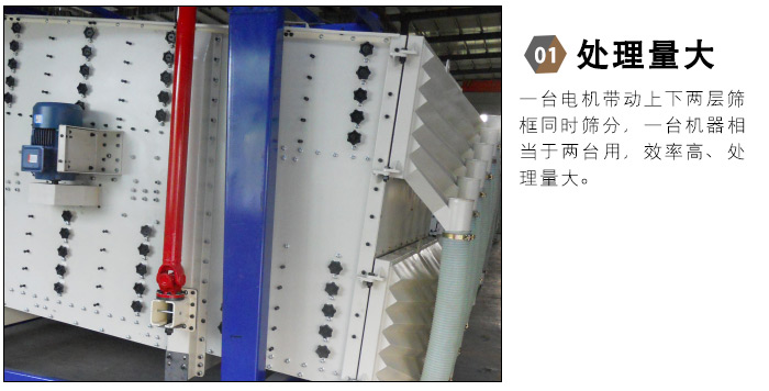 ? ? ? ?機制砂方形搖擺篩具有精度高,處理量大、換網(wǎng)方便、節(jié)能環(huán)保等優(yōu)勢。機制砂方形搖擺篩篩面有款2米長4米,寬1.5米長3.6米等多種規(guī)格。層數(shù)有單1-6層或者同時安裝兩組篩網(wǎng)如:上四下四、上四下四、上五下五等多種規(guī)格。每小時處理量可達(dá)15-20噸,而且精度高于直線篩。
