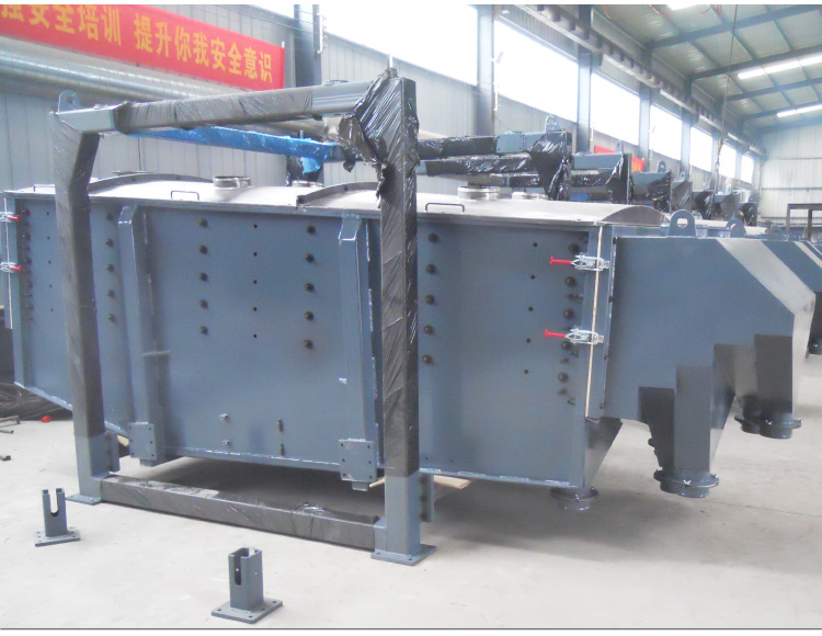 ? ? ? ? 壓裂砂振動篩在篩面上產(chǎn)生螺旋運動,與網(wǎng)面接觸時間長而且物料始終在網(wǎng)面上滾動,不破壞物料的原有結(jié)構(gòu),透篩幾率大篩分效果好,產(chǎn)量大,篩分精度高,適合多種物料的篩分和篩選。從方形振動篩篩機搖動體及篩箱運動軌跡中來看,振動篩其驅(qū)動裝置所產(chǎn)生的振動力是繞定軸方向的,呈現(xiàn)規(guī)律變化的慣性力,其本質(zhì)主要是由偏心輪定州轉(zhuǎn)動所形成的往復(fù)慣性力。根據(jù)方形振動篩的結(jié)構(gòu)特點以及工作原理,其篩面一般是水平或者微傾斜布置?;匦Y的工作原理為,篩機起動后,篩機搖動體即篩箱在慣性力的作用下作前后往復(fù)運動,篩箱帶動篩面作周期性搖動,從而使篩面上的物料隨篩箱一同作平面回旋式運動,其間,小于篩面孔徑的物料通過篩孔落到下層,成為篩下物,大于篩面孔徑的物料經(jīng)連續(xù)翻滾跳躍運動后從排料口排出,然后完成篩分工作??蛇x用長2米寬4米或者其它的規(guī)格的方形搖擺篩,一般篩選20-120目之間的石英砂,一小時可達8-15噸。精度可達95%以上。