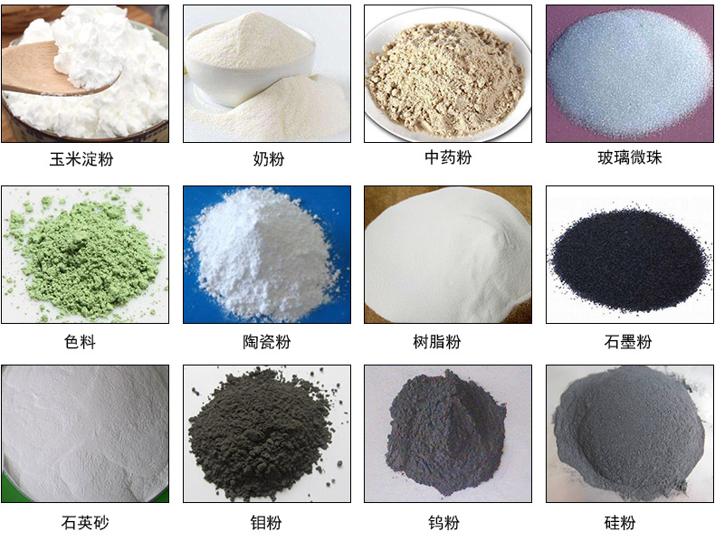 化學粉末:顏料、粉末涂料、TMTD、Vc、潤滑劑、瓷釉粉末、石墨、磨粉、碳粉;