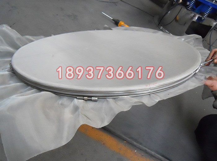 3、陶瓷泥漿振動(dòng)篩采用單網(wǎng)雙箍網(wǎng)架,將網(wǎng)架上的兩跟繃網(wǎng)筋分別依次由上向下壓到網(wǎng)架環(huán)形槽中并鎖緊。?一定要先上下面那道箍上的筋,然后再上上面的那道箍上的筋。這樣上出來更緊,篩網(wǎng)不容易塌陷。